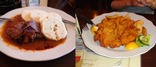 エステート劇場横を歩いていると反対側の歩道から中年男性が駆け寄ってくる、誰かと思ったら昨夜食事したビアレストランのマスターだった。今夜も又寄らせてもらうと握手して分かれてホテルに戻り明日の荷造りをする。夕方又昨夜のレストランで夕食、勿論マスターは大喜びで迎えてくれる。注文内容をチェックして手にしていた旅行ガイドブックの写真からこれに変更しなさいと勧めてくれたのはウィーンの料理だった。