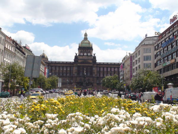 劇場前はナーロドニー大通り、歩いて、途中のテスコという大きなスーパーマーケットに寄って買い物する。その先にヴァーツラフ広場の通り反対側を左に入ると、モーツァルトがドンジョバンニ初演の際 自ら指揮をしたことで有名なエステート劇場前に出る。