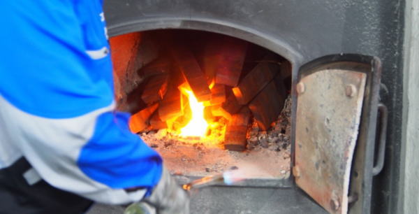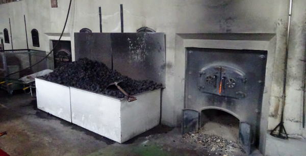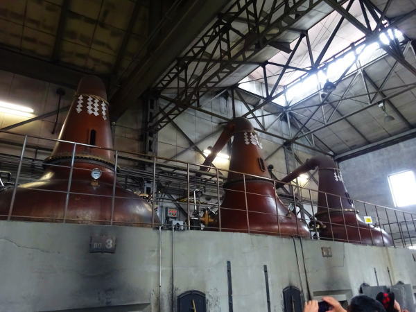 最初は蒸留棟に入る。1936年余市蒸溜所に最初に作られたポットスチル、現在も稼動中。 |
