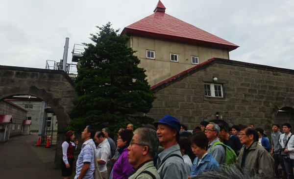 小樽駅13:50発倶知安行きで14:13余市に到着。ほぼ乗客全員がここで下車した、みなニッカウィスキー蒸留所に行く人なので後ろについて行く。駅から出で数分で映像で何度か見たことのある工場正門入口だ。 ここに、1934年竹鶴政孝氏により開設され、敷地面積は13万2000平方メート ル。この工場でシングルモルトウイスキー「竹鶴」「余市」をはじめとしたニッカ製品が醸造されている。 |